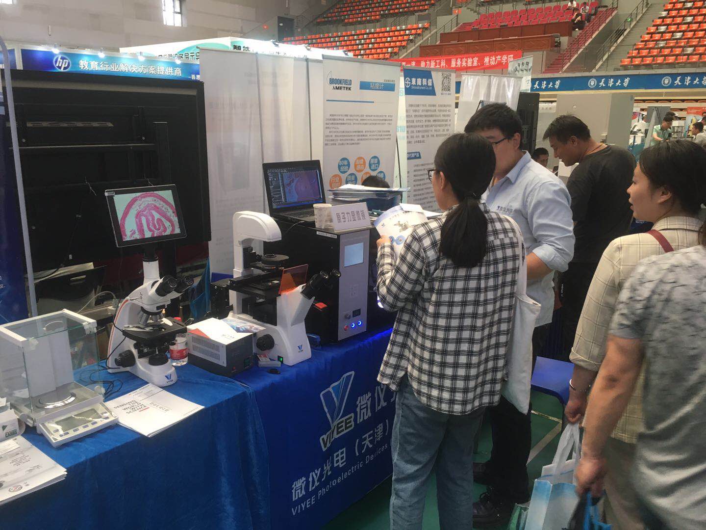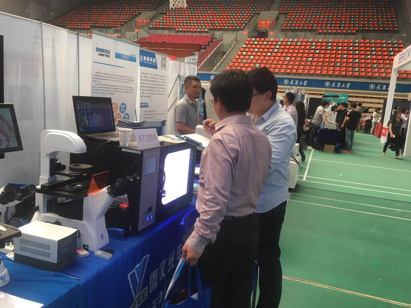 天津大學(xué)第二十三屆儀器設(shè)備展示會(huì)于2019年5月10日至5月11日在天津大學(xué)衛(wèi)津路校區(qū)體育館圓滿舉行,本次展會(huì)云集眾多出名廠商參與,天津微儀光學(xué)儀器有限公司攜多款顯微鏡產(chǎn)品亮相展館,展位人氣十足,吸引了眾多觀眾到場(chǎng)參觀體驗(yàn)。